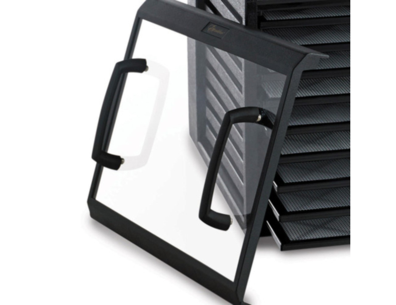 Уникальная горизонтальная система сушки воздушным потоком Parallexx™ 9 съемных поддонов Вставки из гибкой сетки Регулируемый термостат Поддоны можно мыть в посудомоечной машине Двигатель мощностью 600 Вт Прозрачная дверца Таймер на 26 часов